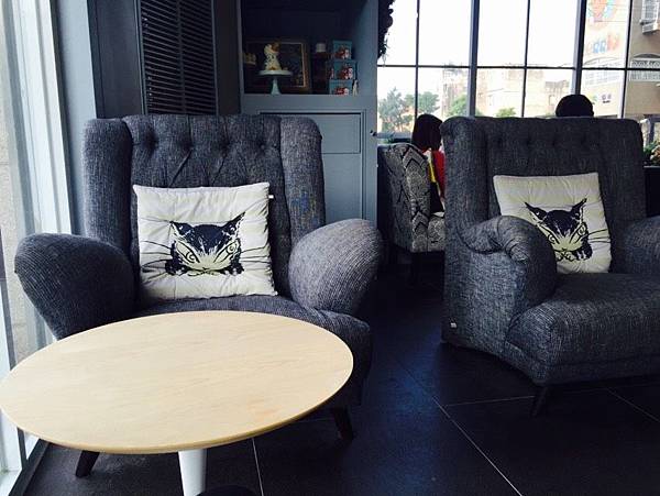 這單人沙發區座起來蠻舒服的,而且後面的抱枕還是達洋貓